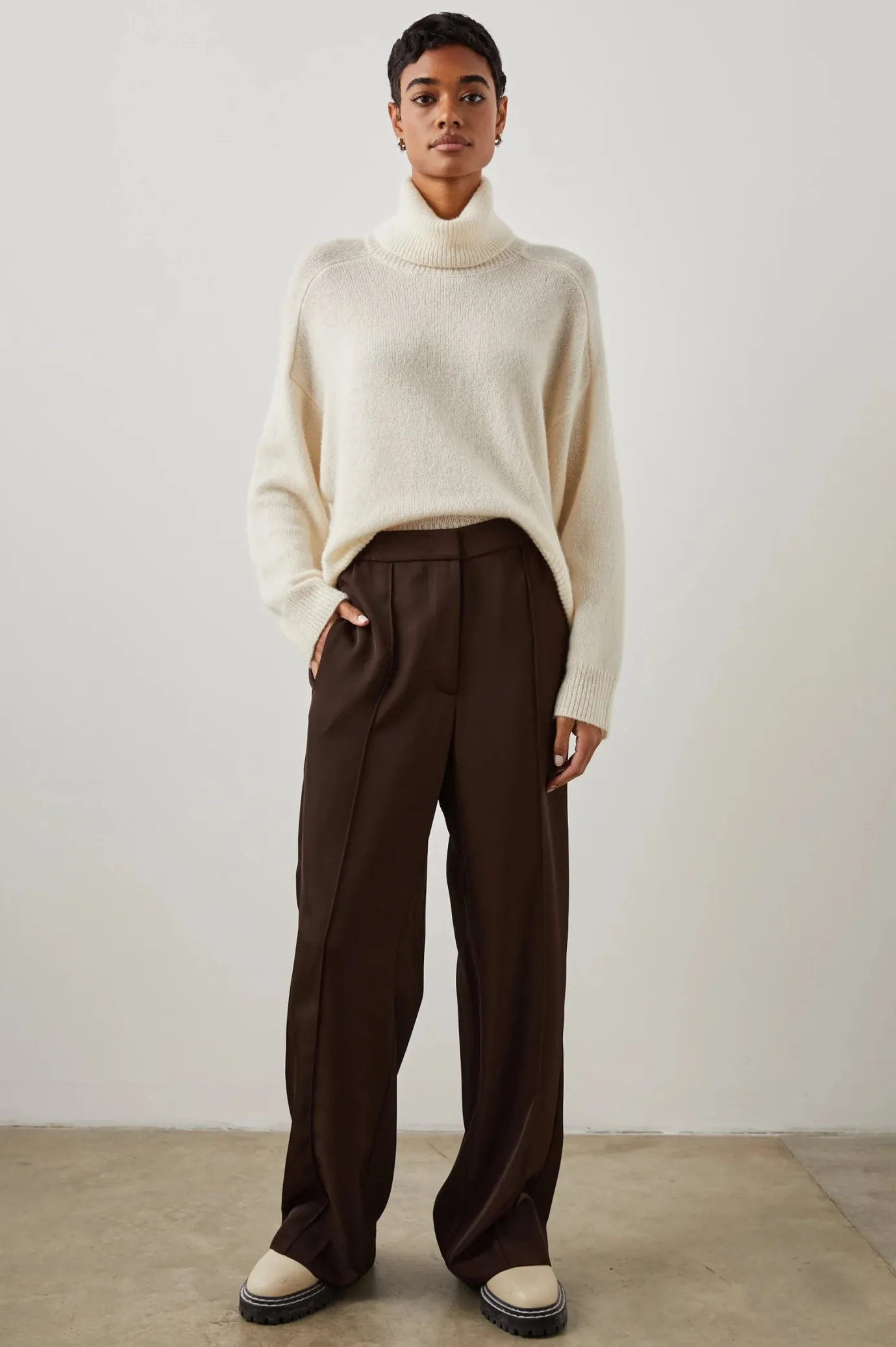 From work to the weekend, the Alta is your new go-to trouser. Tailored to perfection with vertical pleating and a straight silhouette, these chocolate brown pants are a staple.