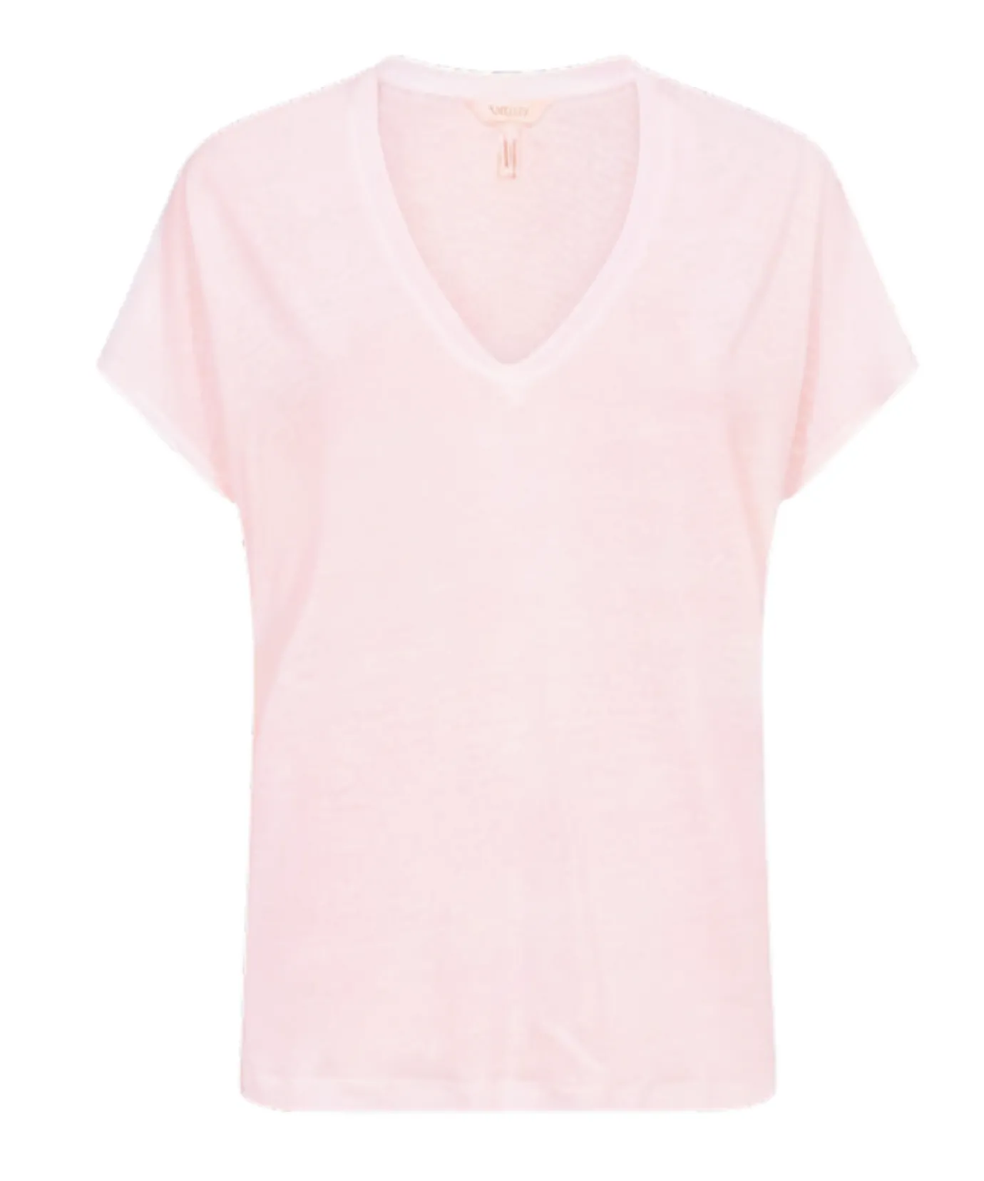 This versatile V-neck T-shirt by Part Two is a must-have in any wardrobe. Made from a soft and lightweight linen fabric, it offers all-day comfort and pairs effortlessly with any outfit. The timeless design, featuring a V neckline and short sleeves, can be dressed up or down for any occasion.