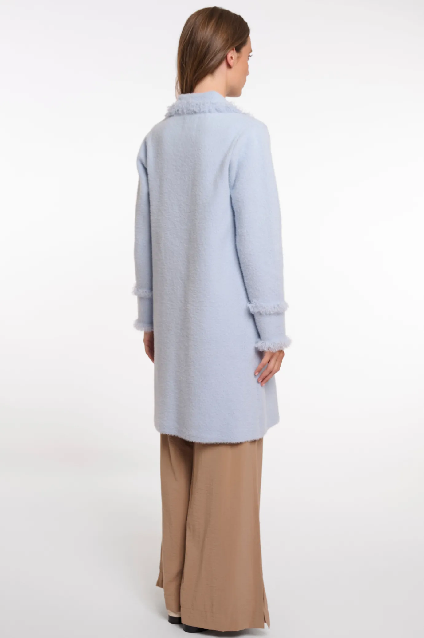The Catena Fringed Coat in Birch is the perfect addition to any outfit. This super soft, single breasted cardigan features a classic collar and a button fastening for a timeless look with two open front pockets and fringed details on the sleeves and front edges to keep you warm and stylish. Don’t miss out on finishing your look with this must-have piece.