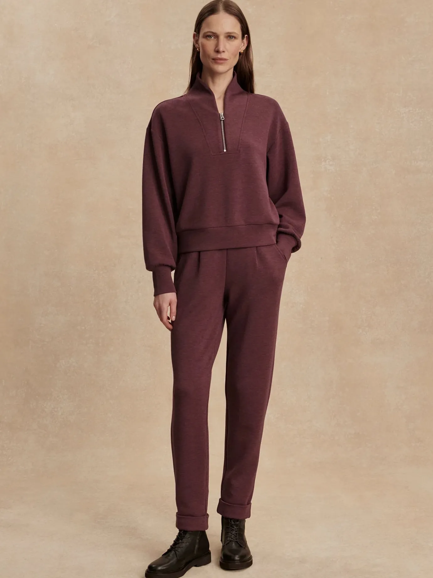 Expertly crafted for versatile styling, the Burgundy Marl Davidson Sweatshirt offers a subtly cropped design, perfect for layering. Made with lightweight DoubleSoft® fabric, this sweatshirt features dropped shoulders and deep cuffs for added comfort. Complete your laid-back luxury look with coordinating sweatpants and stay comfortable and stylish in any season with this essential sweatshirt.
