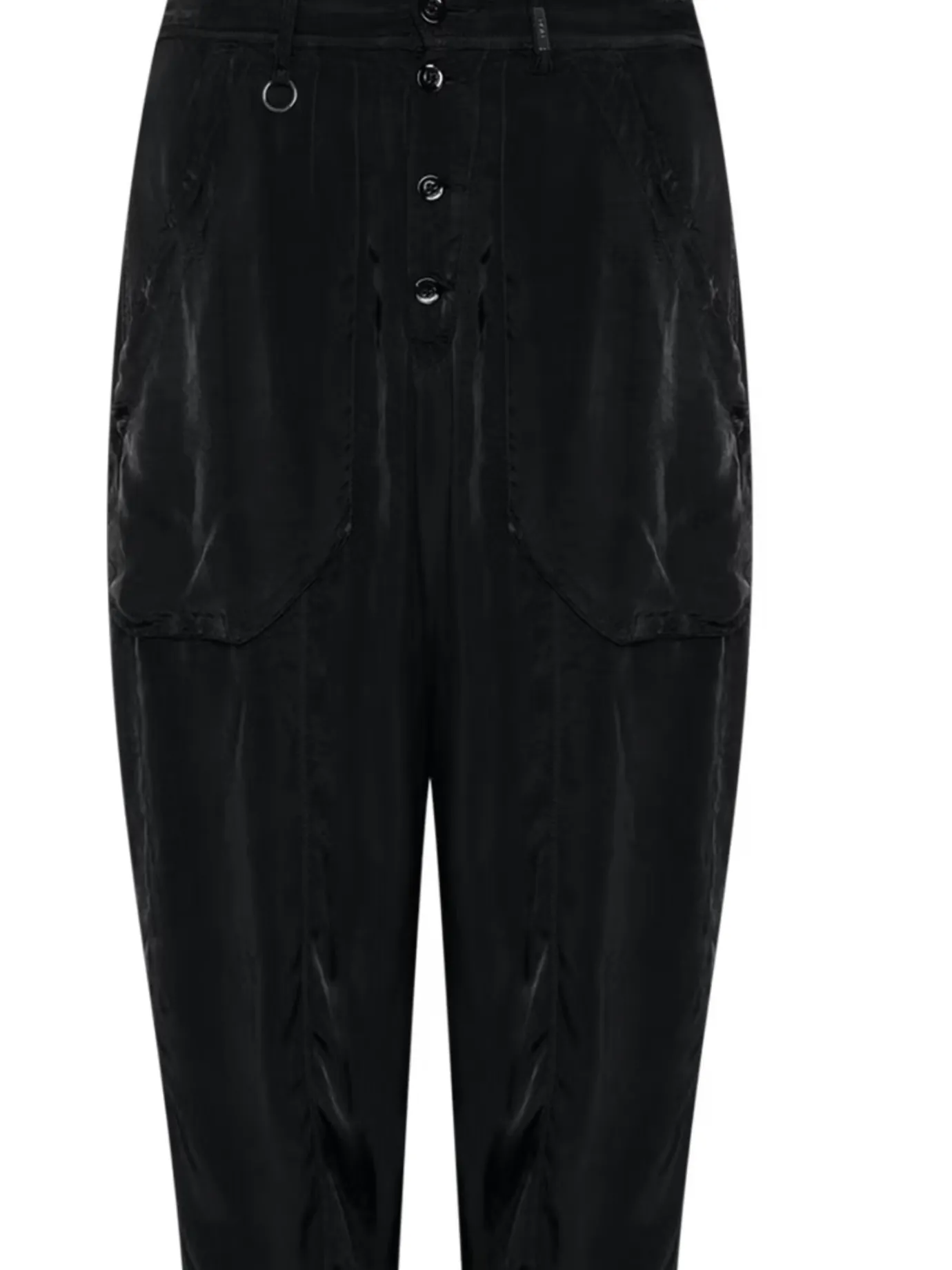 Experience an ultimate flattering silhouette with the SS24 Discipline Trousers by High. Made from a luxurious soft, fluid, and lightweight satin fabric, these trousers feature a waistband and belt loops with a button-thru fly for a secure fit at the front and an inset elastic waistband at the back for comfort. Two bellows-style slanting hip pockets are featured on the front and two oversized patch pockets with button closure at the back that provides both functionality and style. Detail stitching on the front and back leg seams add a touch of quirky detail. Revamp your closet with these dynamic and fashionable trousers.