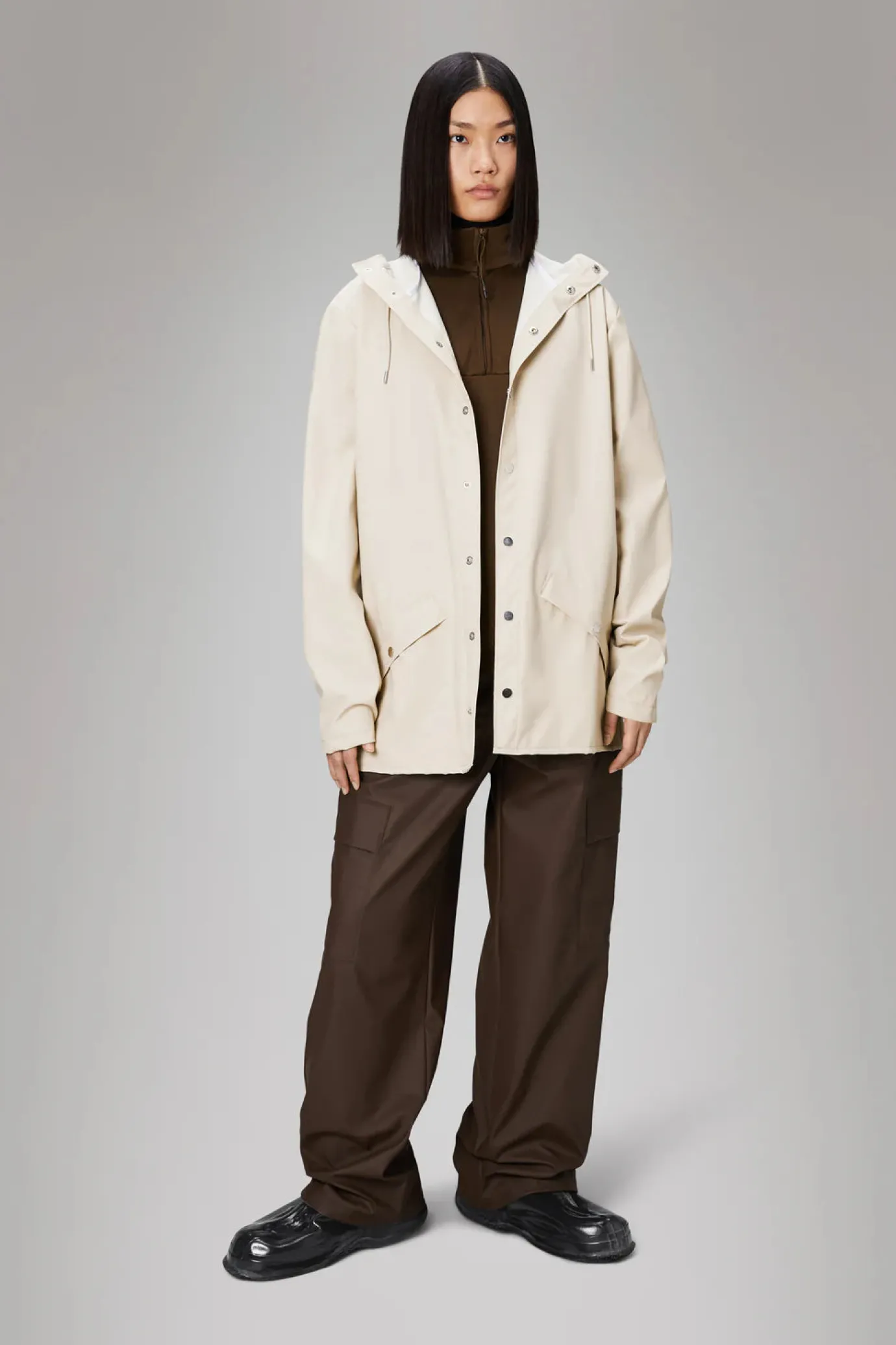 Rains Dune ‘Short Jacket’ is a functional and unisex rain jacket with a casual fit. Inspired by classic rainwear, Jacket is an urban version made from a water-resistant lightweight fabric with a matte and smooth finish. With its casual silhouette, Jacket has classic RAINS details as the storm shield and an adjustable hood with a practical cap function.