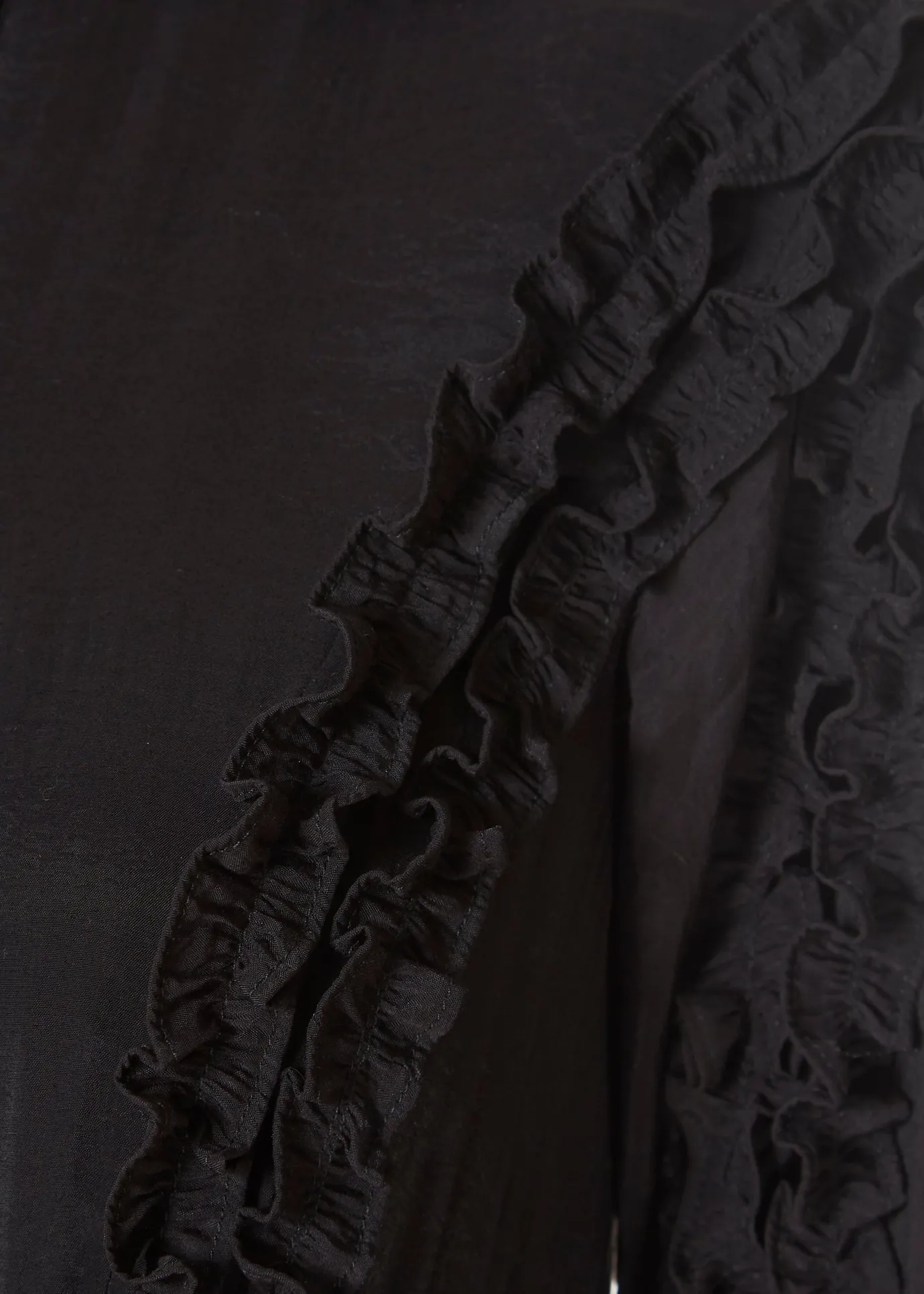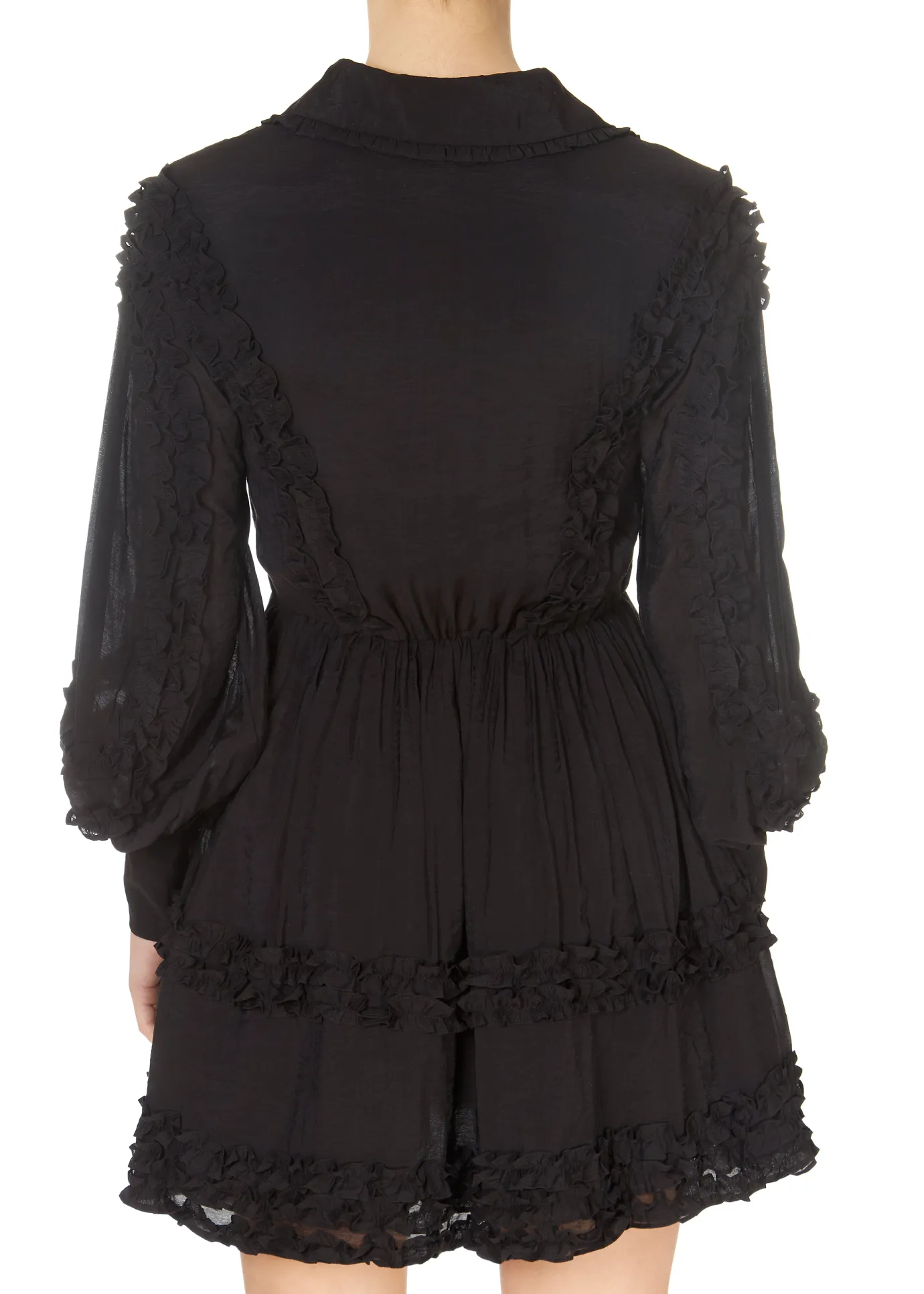 Elliatt Jayda Black Mini Dress. The little sister dress of Madison. The shorter version is still elegant, fun but yet delicate and feminine. Offers an A-line cut. Just like Madison, Jayda is brimming with delicate detail of ruffled frills throughout. Features a button-down front, a frilled collar, an elastic waistband to cinch and enhance your waist, long puffed sleeves and cuffed with an invisible zip. Match this mini dress with heels or trainers. The perfect number for the spring/summer events ahead. Jayda is also available in white.