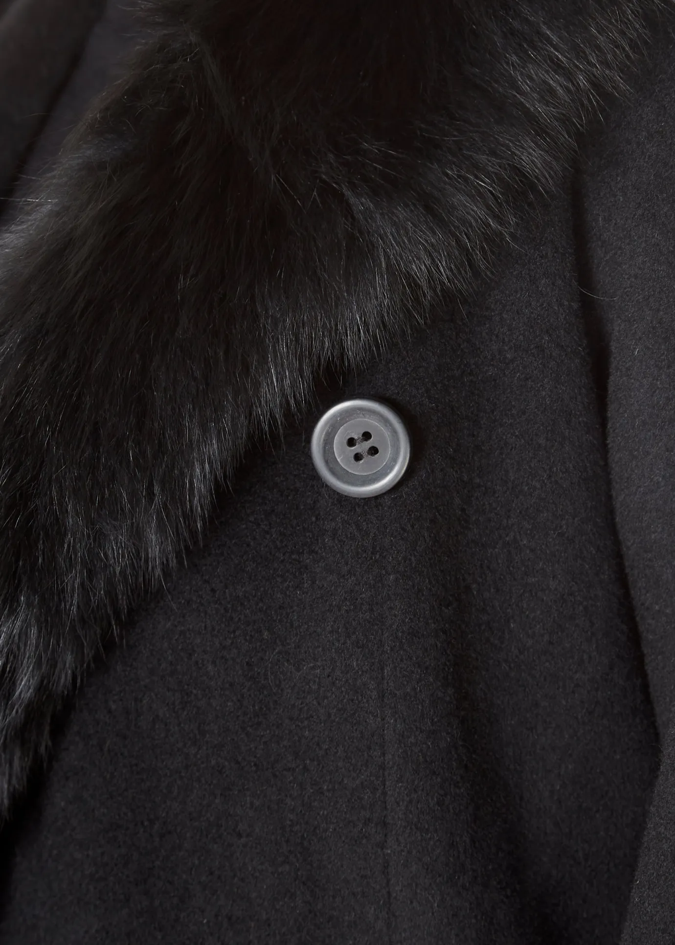 Jessimara Long Hooded Wool Blend Coat Black. Introducing the big sister of a Jessimara original, in a new longer length of 115cm from nape of neck to hem. Fully lined and crafted from a wool mix. Timeless and elegant, offering you a relaxed silhouette. Features off-centre front button fastening, long fluted sleeves, genuine fox fur trimmed hood, pockets and a waist tie belt. A stylish coat that will see you through the years for any occasion. Check out the sister coat Jessimara 3/4 Hooded Coat.