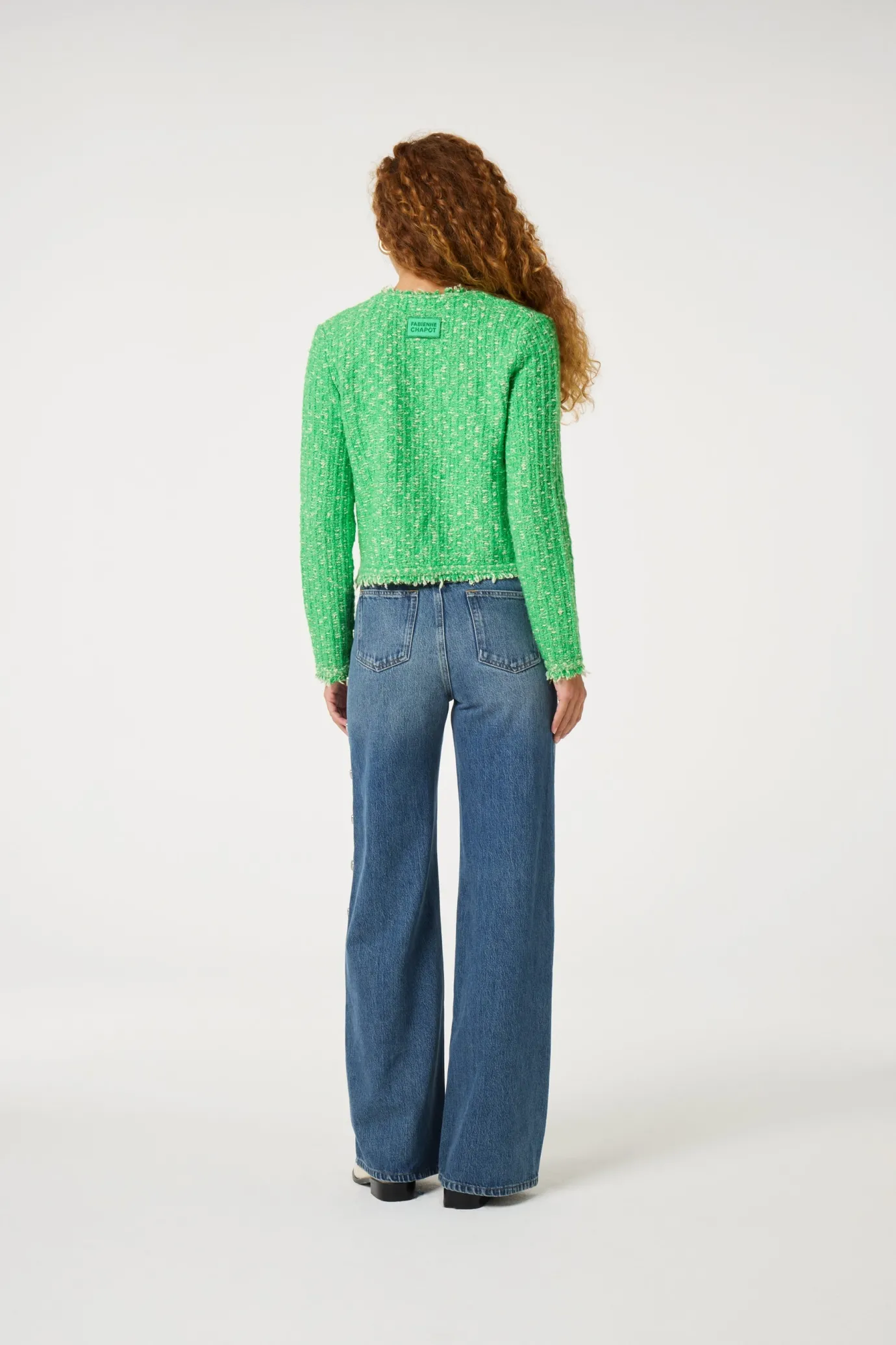 Elevate your wardrobe with the Joshua Green Apple Cardigan Jacket by designer Fabienne Chapot. This tailored tweed jacket boasts a V-neckline, long sleeves, and two front pockets. Made from a luxurious blend, it effortlessly adds a pop of color to any outfit. Ideal for both casual and chic occasions.
