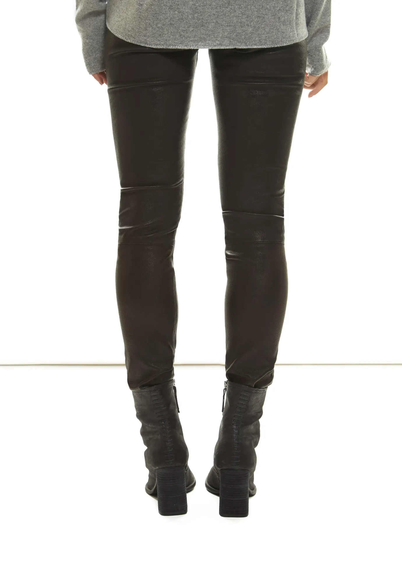 This is the ‘Leather Stretch Leggings’, coated for leather-like luster. Fitted through the hips, thigh and leg. There is an elasticated wastband and stitching on the knee. These are a great style and very wearable.