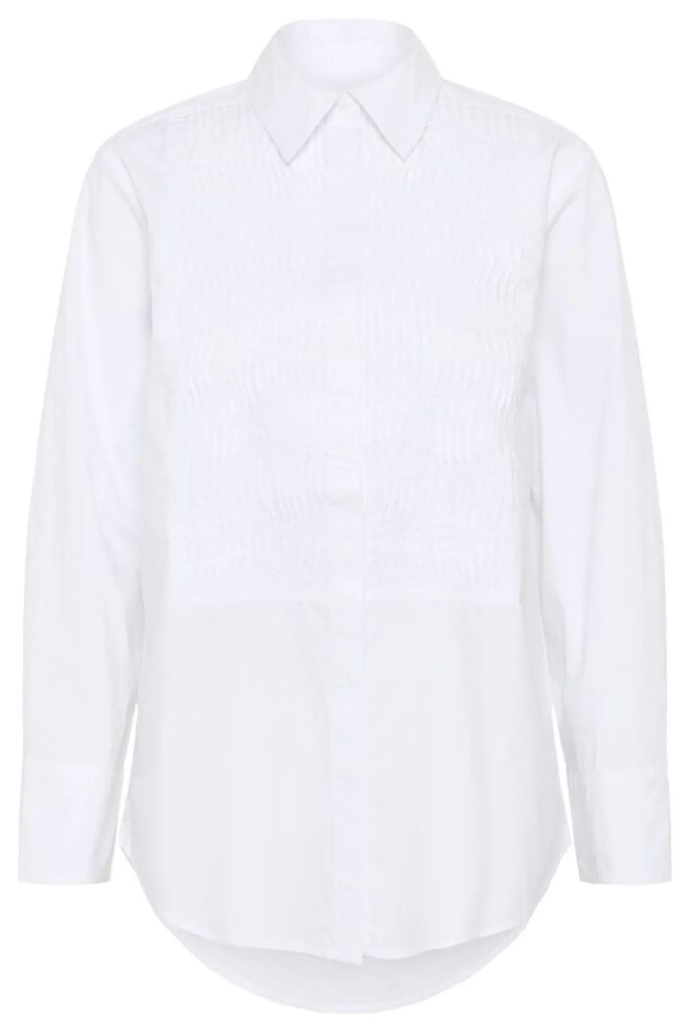 Elevate your wardrobe with the Natinka White Shirt, crafted from classic cotton with delicate front pleats for a refined, timeless appeal. Its regular, slightly loose fit and wide cuffs offer contemporary comfort, seamlessly blending elegance with everyday versatility. Perfectly suited to pair with jeans or tailored trousers, this long-sleeve shirt brings effortless style to any occasion.