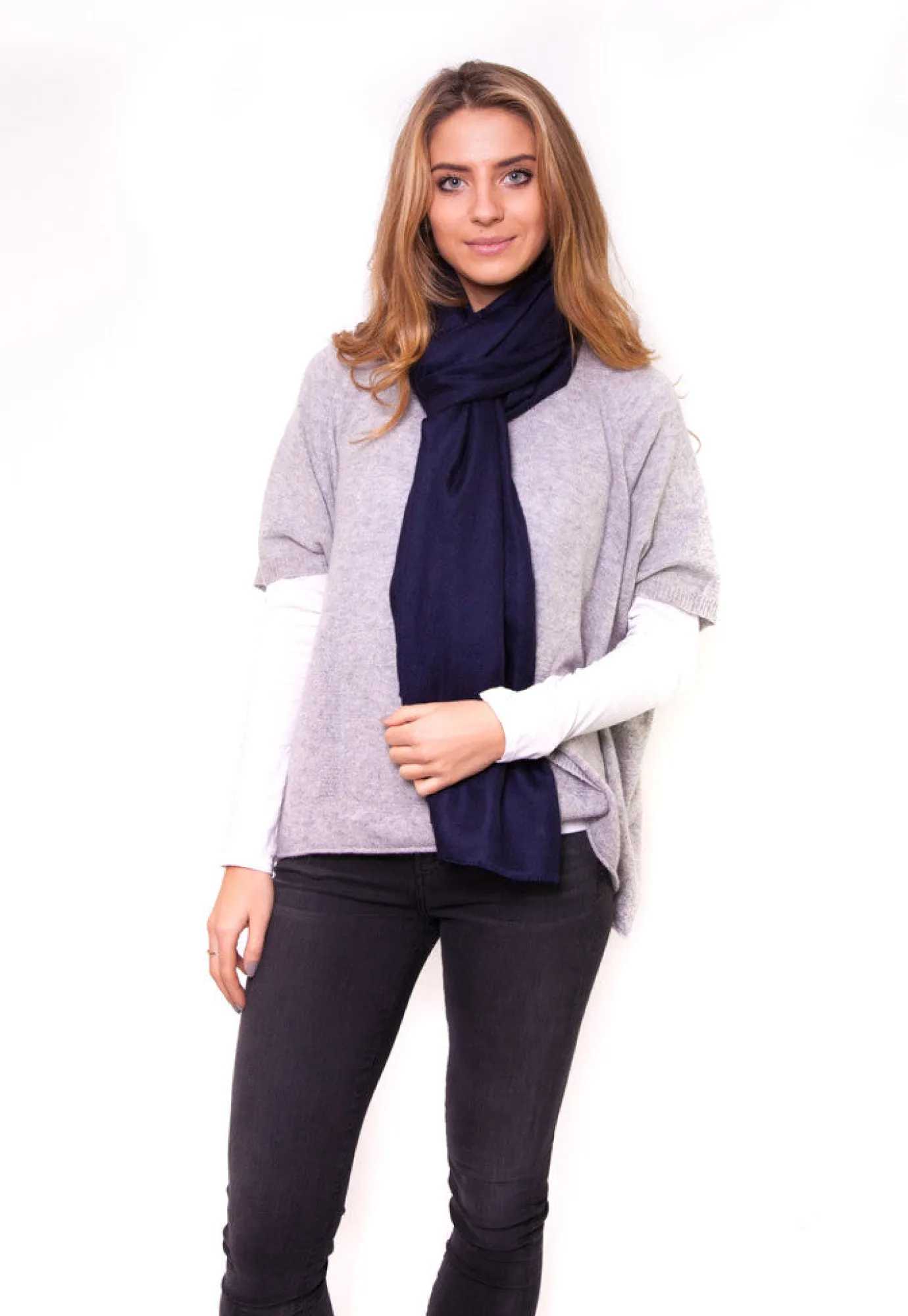 Navy Full Cashmere Scarf. A sumptuously soft addition to any winter accessories collection, this Jessimara scarf is expertly woven.