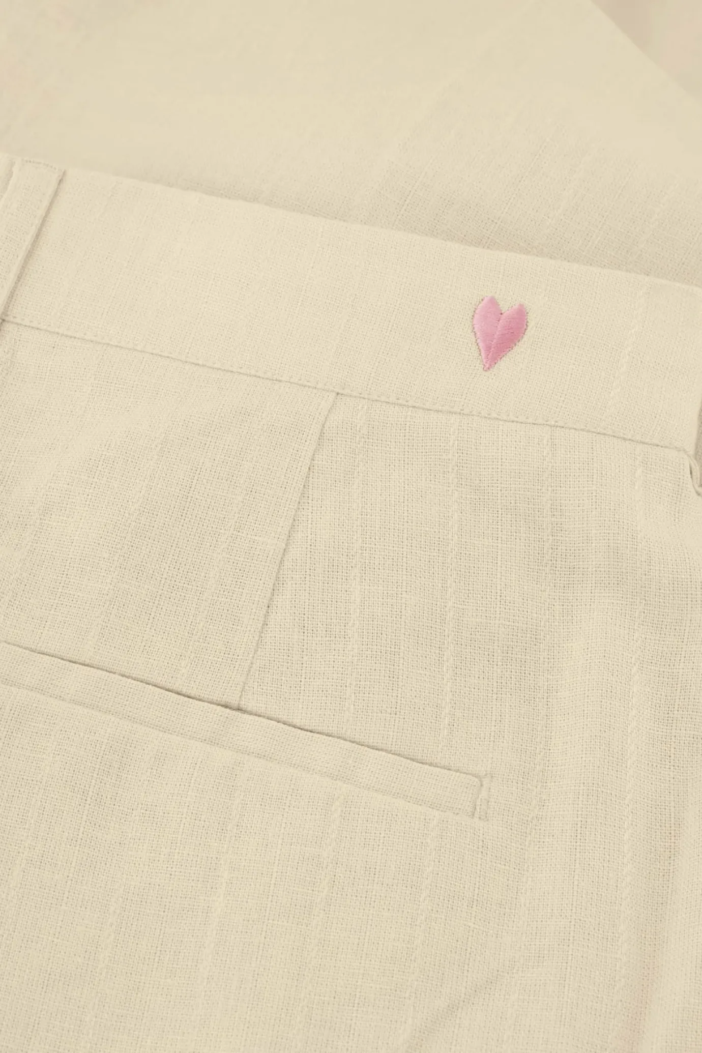 These loose-fit beige trousers, made from a linen-viscose mix, offer an elegant yet versatile style. The light color is perfect for summer, making them easy to combine for any occasion while providing both comfort and sophistication.