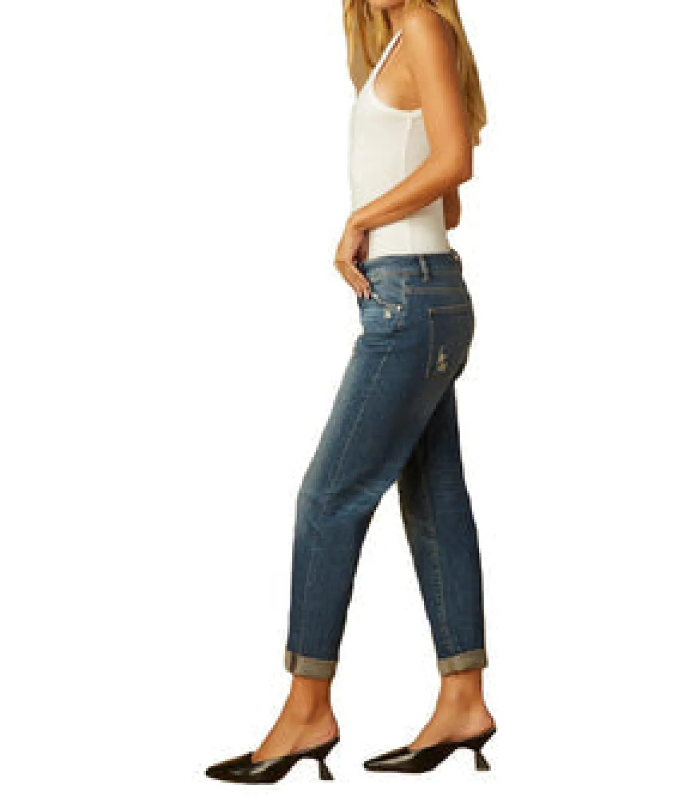 DL 1961 Riley Straight Boyfriend Adam Distressed. A slouchy relaxed fit jean with a tailored straight leg. Features a mid-rise waist and a mid to light wash. Zip and fly, distressed and pocket clipping detail, front and back pockets and an adjustable rolled hem. Can also be worn as a full length. Crafted from cotton, these cool and comfortable straight leg jeans are a perfect match with Lofina boots and a leather jacket.