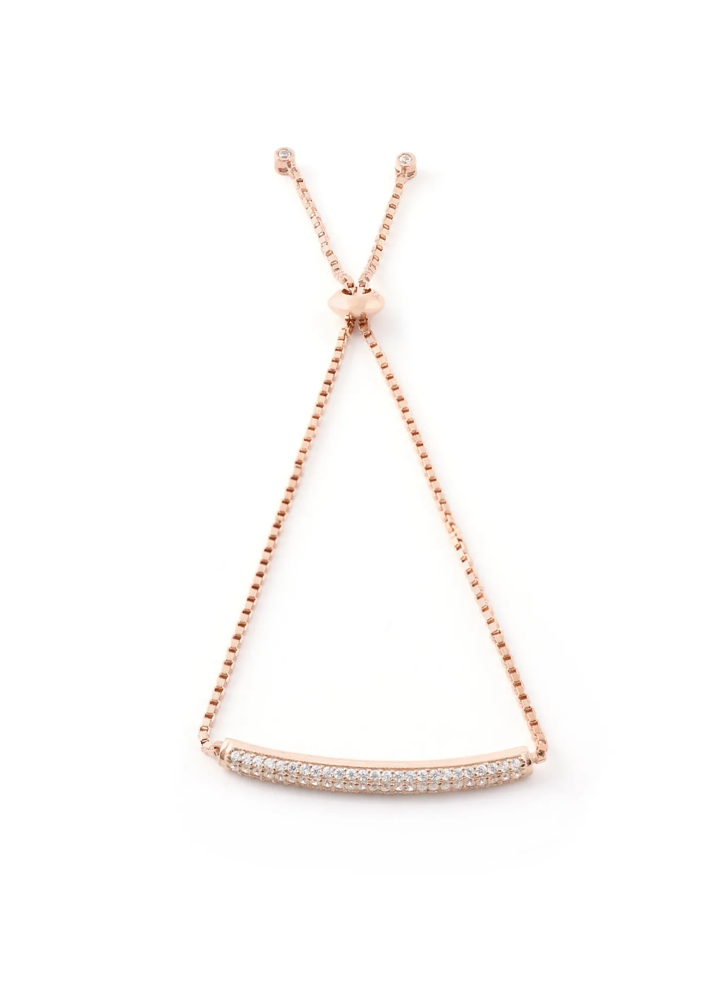 A gorgeous Rose Pleated Bracelet with cubic zirconia crystals. This bracelet is adjustable.