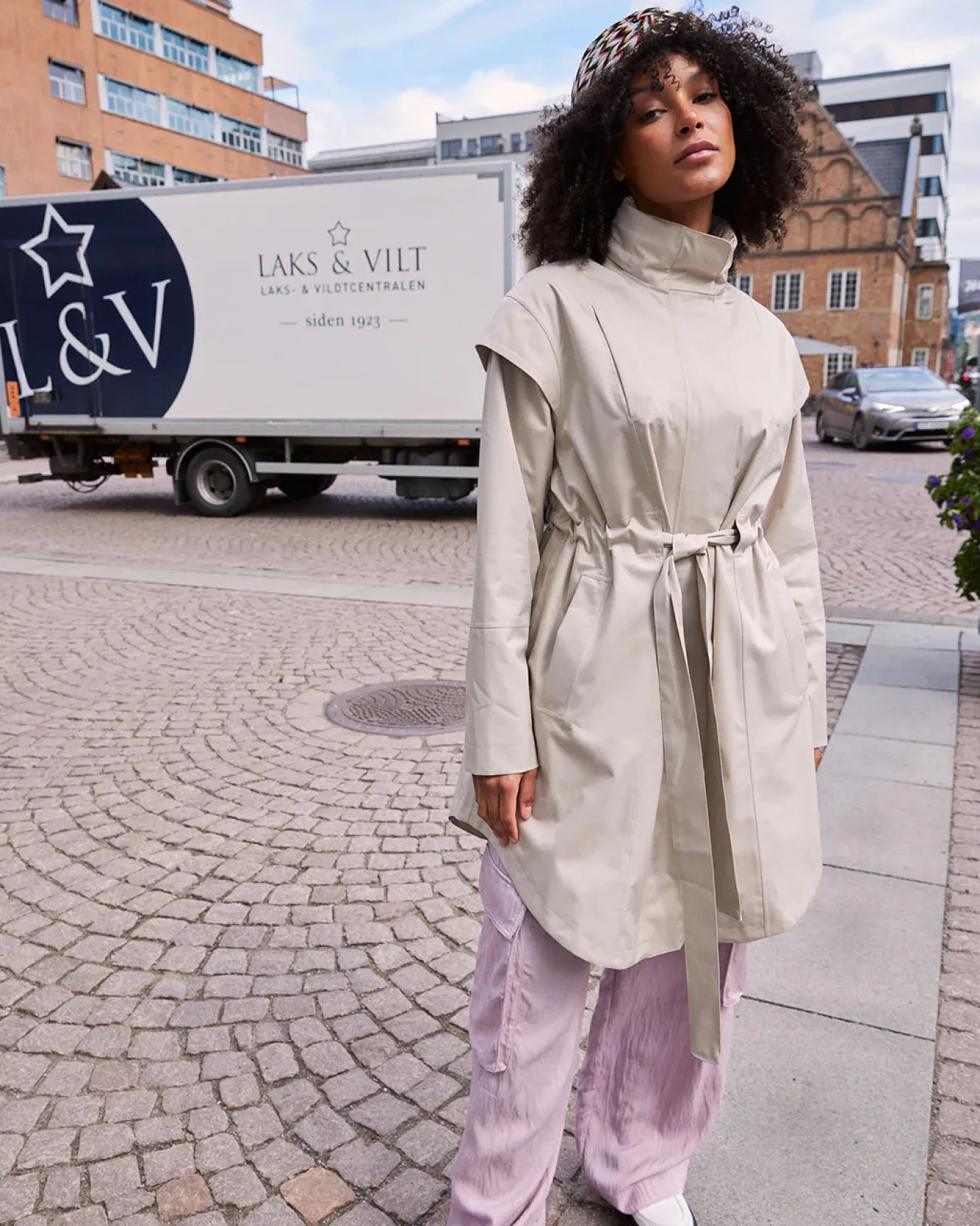 Stay dry in style with the Sand Monsun Coat! This waterproof raincoat comes in a chic Black colour and features cap sleeves, a functional tunnelled belt, and a hidden hood in the collar. With a normal to oversized fit, it’s perfect for all body types and can even be worn in temperatures as low as 5℃. Upgrade your outerwear game now!