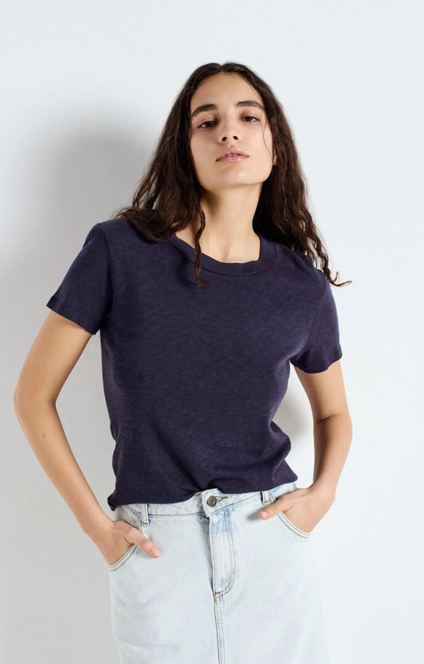 The Sonoma short-sleeved women’s t-shirt features a slim, close-fitting cut that enhances your shape. This fitted short sleeved T-Shirt is a classic from designer American Vintage with crew neck and in their signature slub fabric. Take your normal size as fit is true to size.