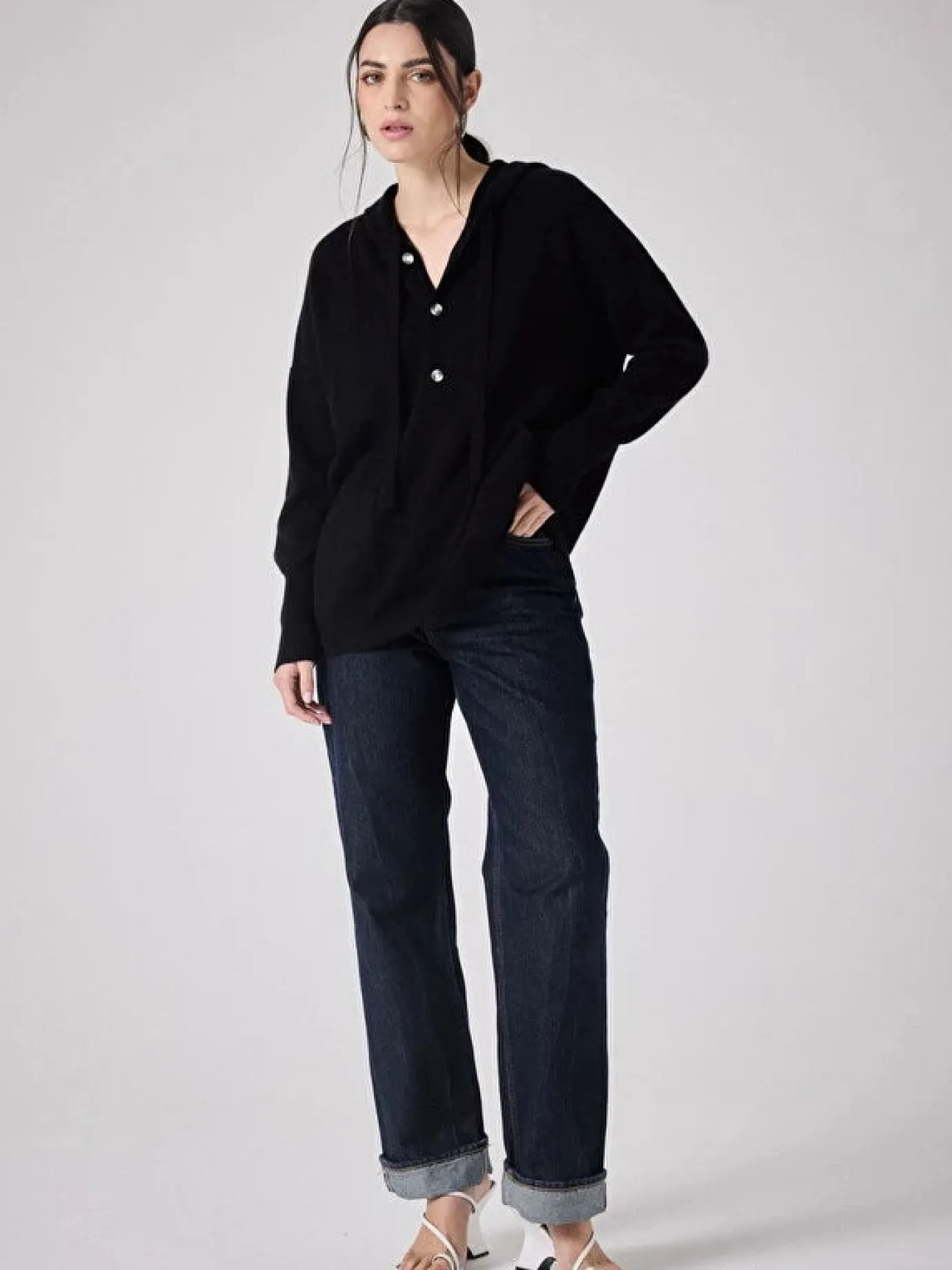 Unleash your inner designer with the Ariana Cashmere Hoodie by Not Shy. This luxurious women’s jumper is not just stylish, but also functional with a hood, front pockets, and button closure. The cashmere fabric and ribbed finishes ensure ultimate comfort and elegance. Elevate your wardrobe with this must-have piece!