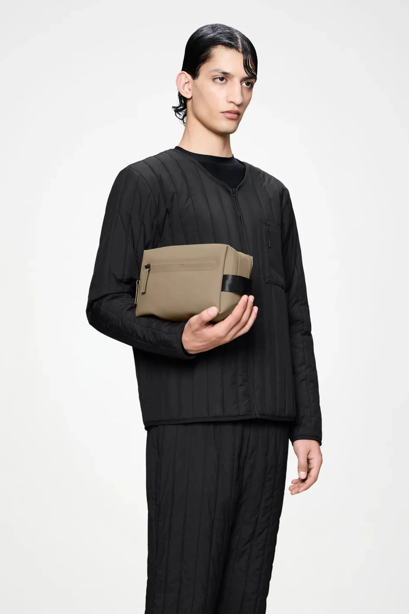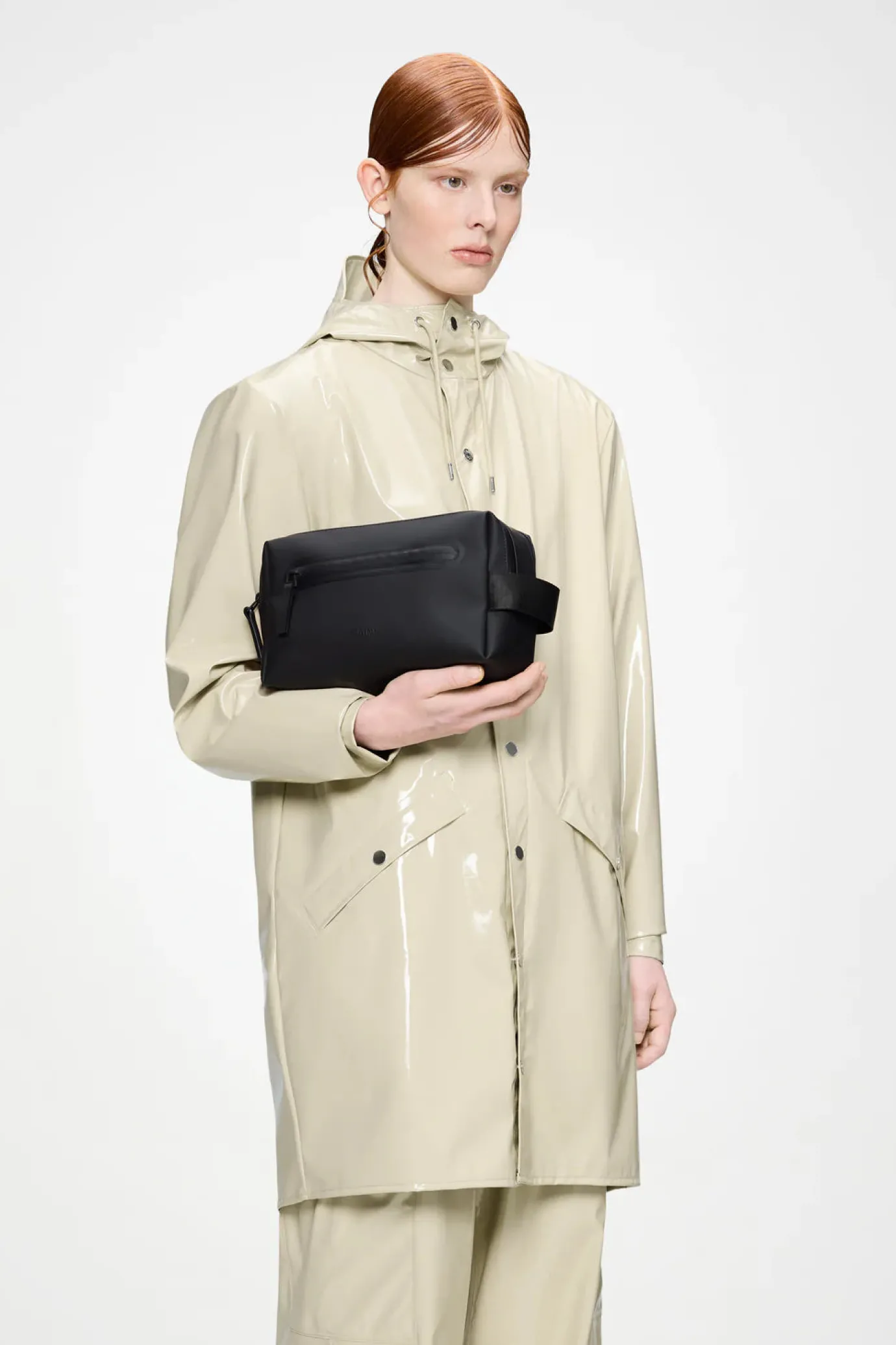 Stay organised and protected with the Beige Two Zip Washbag, designed for those who value both style and substance. This compact essential features two independent zip compartments that keep your grooming, makeup, and skincare items neatly separated and easy to locate. The convenient front pocket provides instant access to everyday necessities, while the sturdy webbing handle ensures comfortable carrying whether you’re heading to the gym, travelling, or managing your daily routine. Crafted from Rains’ premium waterproof PU fabric, it delivers exceptional durability and reliable protection against moisture—making it the practical companion that moves seamlessly through your life.