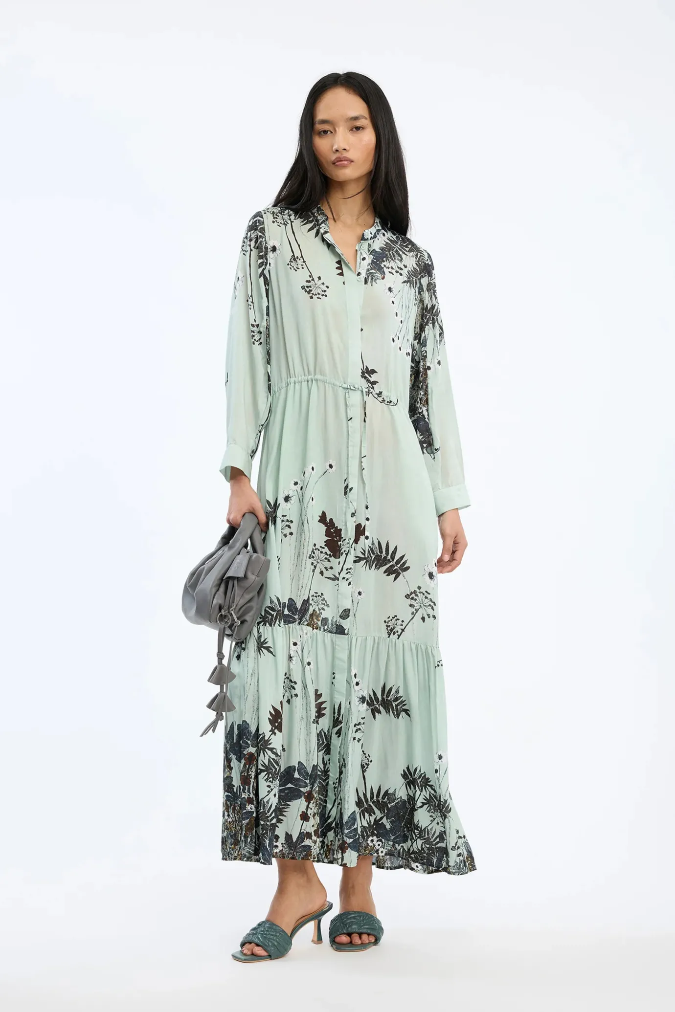 Discover the Bernadette Mint Print Dress by Designer Munthe—a versatile piece that effortlessly transitions from day to evening. Crafted from lightweight fabric adorned with an elegant botanical print, this dress features a practical button-through front, long cuffed sleeves, and an adjustable drawstring waist for a customised fit. Each piece is uniquely printed with minimal waste in mind, making your dress truly one-of-a-kind. Perfect for those seeking understated sophistication with an eco-conscious edge.