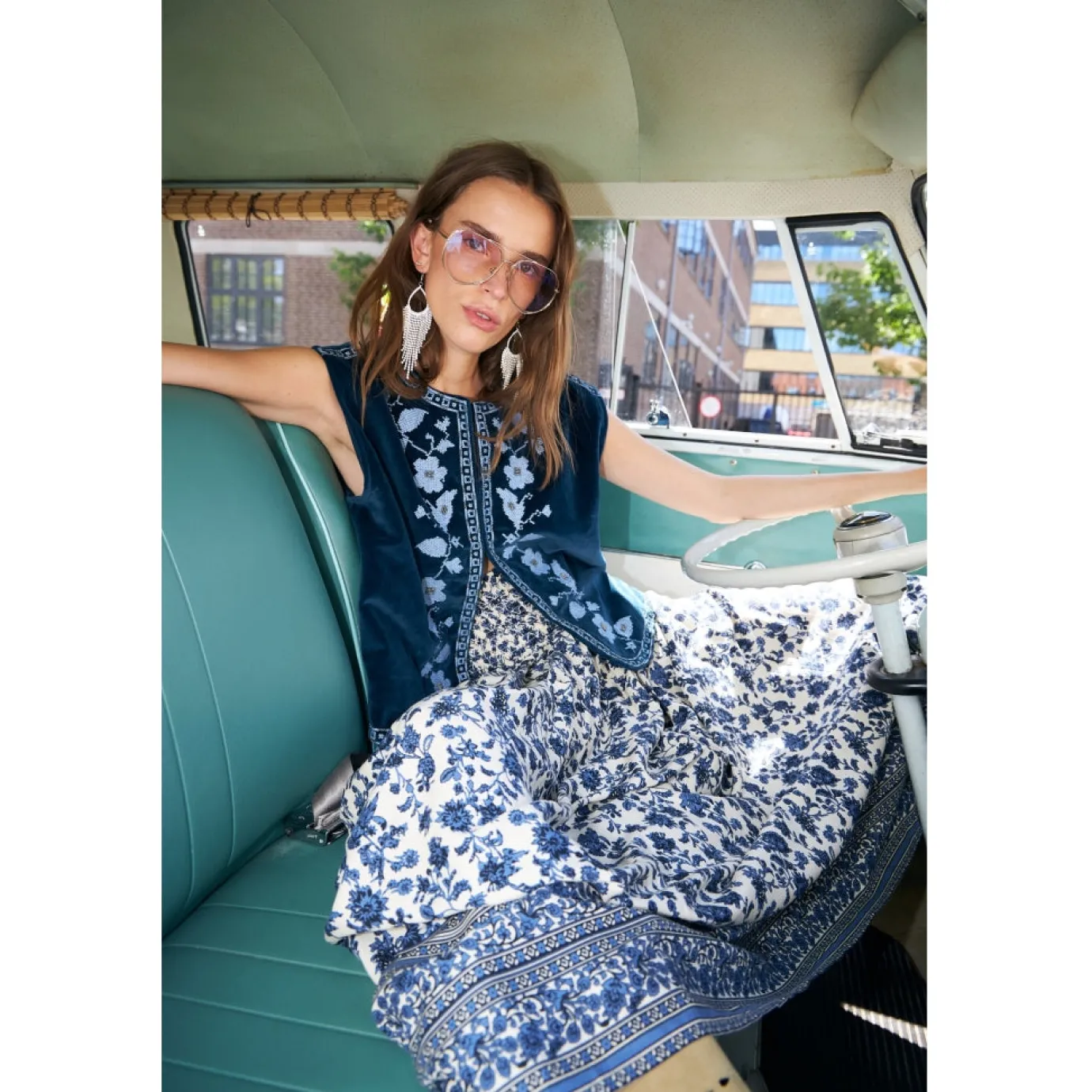 The Bin vest transforms any outfit with its sumptuous velour fabric and intricate hand-inspired embroidery. Featuring delicate artistic details on both front and back, this relaxed-fitting piece celebrates traditional craftsmanship with a modern, feminine edge. The softly rounded silhouette gracefully frames the embroidery’s intricate work, making it an effortless layering essential over your favourite shirts, tees, or dresses. Available in serene Blue, it’s a versatile wardrobe investment that adds texture and artistry to your everyday style. Treat this treasured piece gently to preserve its handcrafted beauty for years to come.