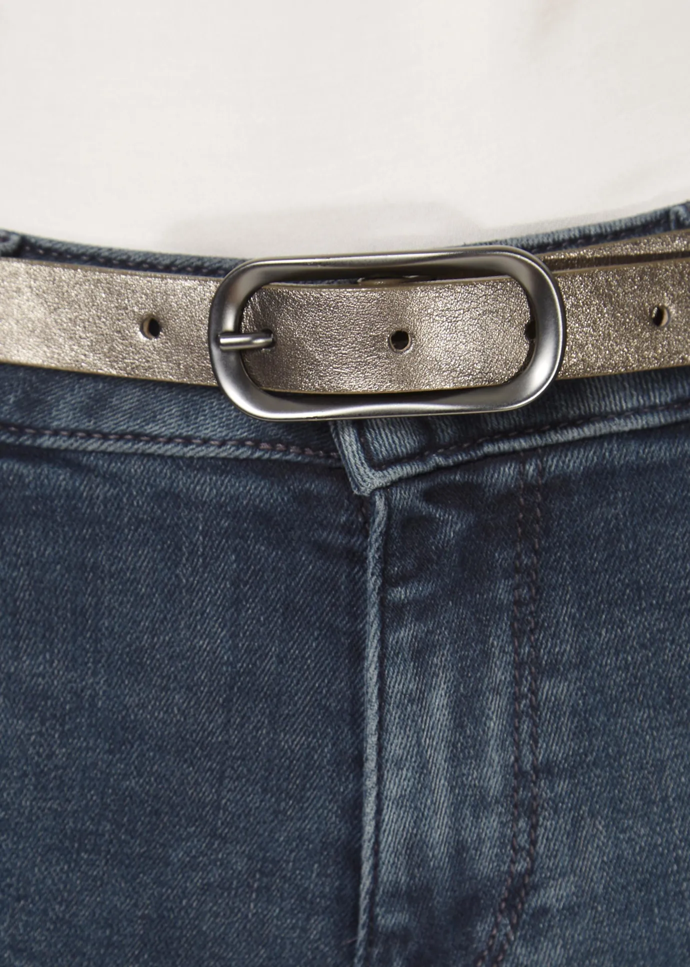 This is the ‘Clear’ Thin Shimmery Pewter Belt by our friends at Streets Ahead! Shimmery and embossed skinny leather belt with a matte gun metal buckle. This gorgeous belt is the perfect finishing touch to your outfit!