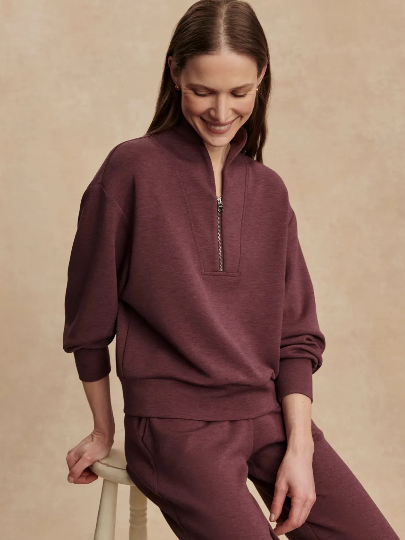 Expertly crafted for versatile styling, the Burgundy Marl Davidson Sweatshirt offers a subtly cropped design, perfect for layering. Made with lightweight DoubleSoft® fabric, this sweatshirt features dropped shoulders and deep cuffs for added comfort. Complete your laid-back luxury look with coordinating sweatpants and stay comfortable and stylish in any season with this essential sweatshirt.