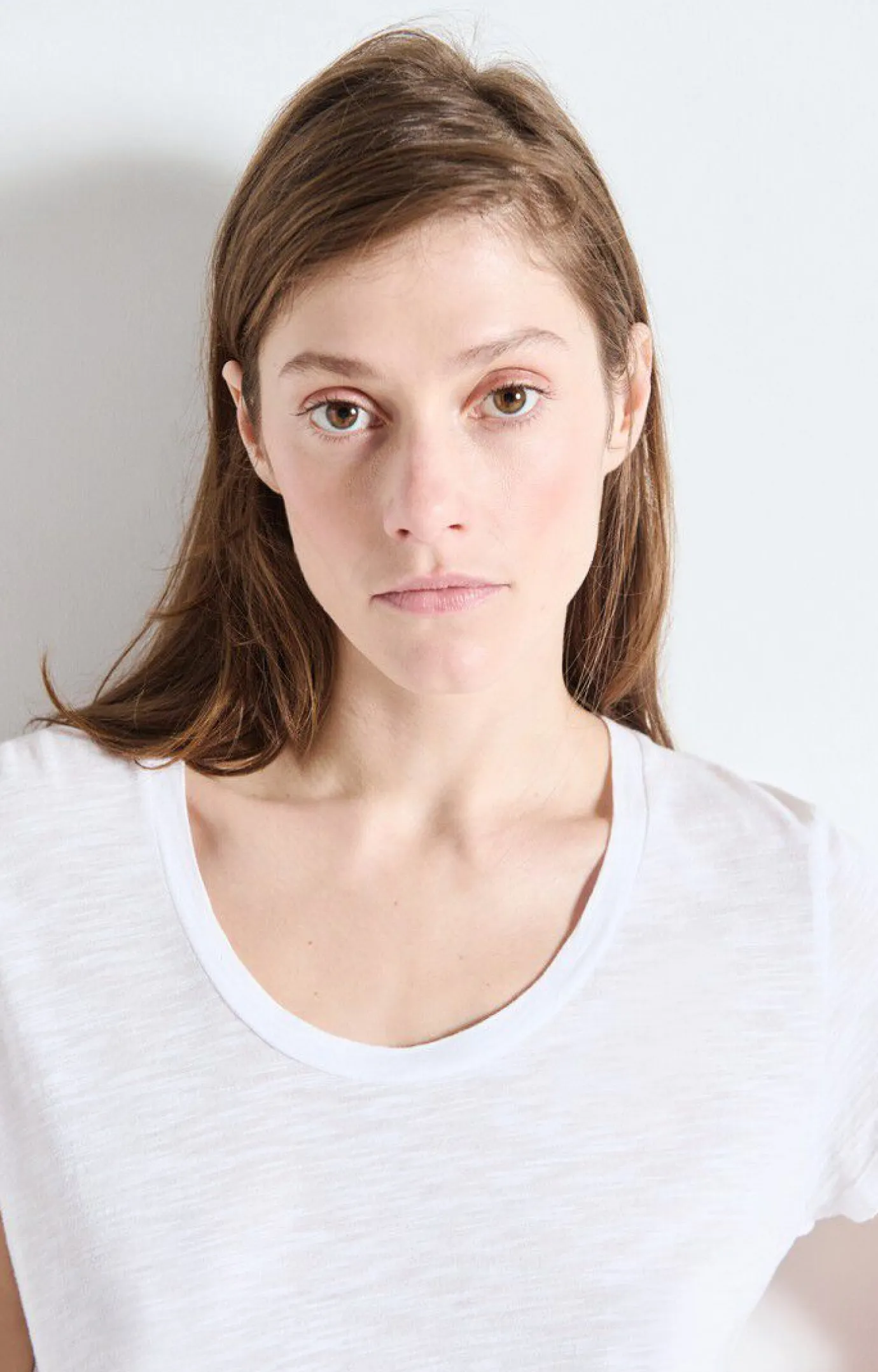 The iconic Jacksonville t-shirt stands out with its feminine cut. Its soft, textured fabric combines practicality with everyday comfort. This classic T-Shirt is a straight cut, short sleeves with a scoop neck. Fit is normal so take your ususal size.
