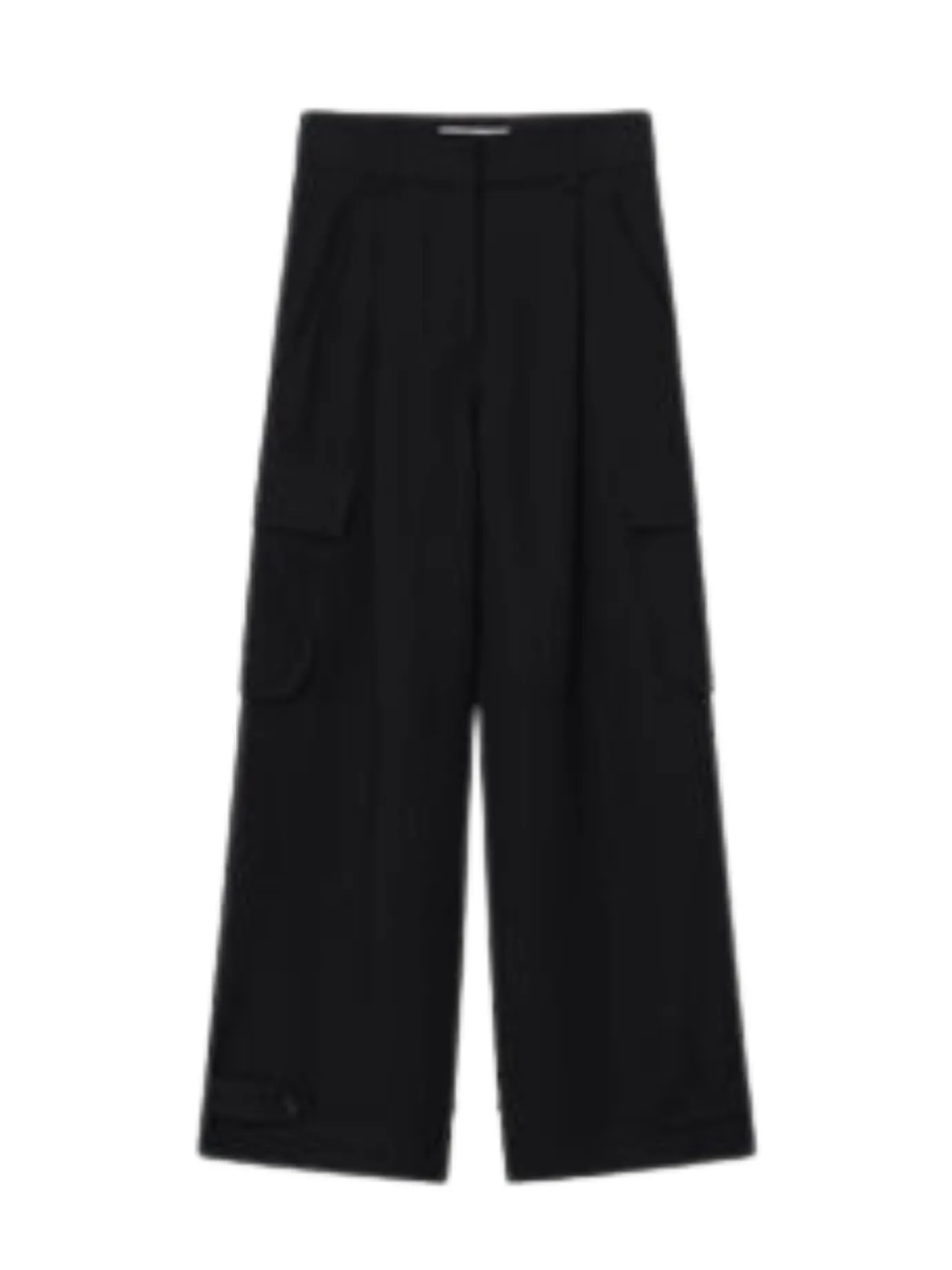 The Lance Classic wide-leg, low-rise trousers boast a button fly, patch pockets at the back, and cargo pockets at the sides. Combining urban and military style, the gaberdine fabric of these trousers provides an ideal fit. Wear with the Xena Top in Creme Brulee and the matching gaberdine Hector black Blazer for a dressy day or with the Mianna sweater in black with for a more casual plan.