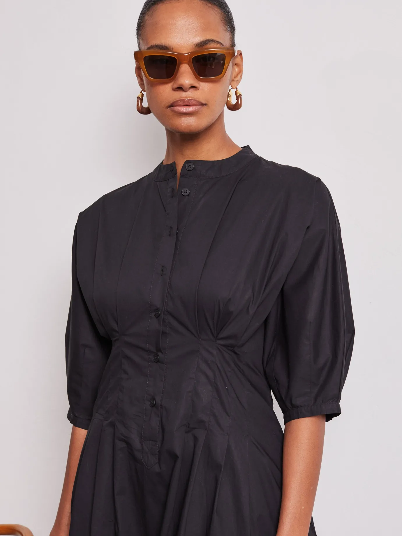 The Nova dress by Vi.ve.re. is a must-have for any fashion-forward individual. Made from 100% cotton, this chic black dress offers both style and comfort. The pleated, nipped-in waist creates a feminine silhouette, making it versatile for any occasion. Elevate your wardrobe with effortless elegance.