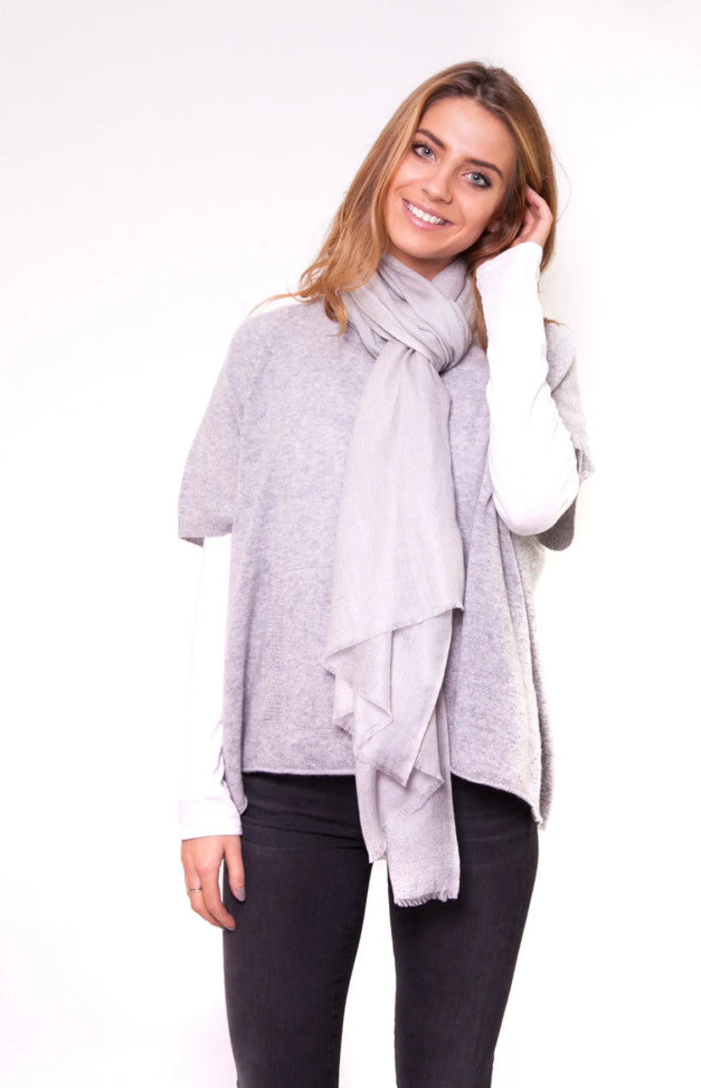 Pale Silver Grey Full Cashmere Scarf. A sumptuously soft addition to any winter accessories collection, this Jessimara scarf is expertly woven.