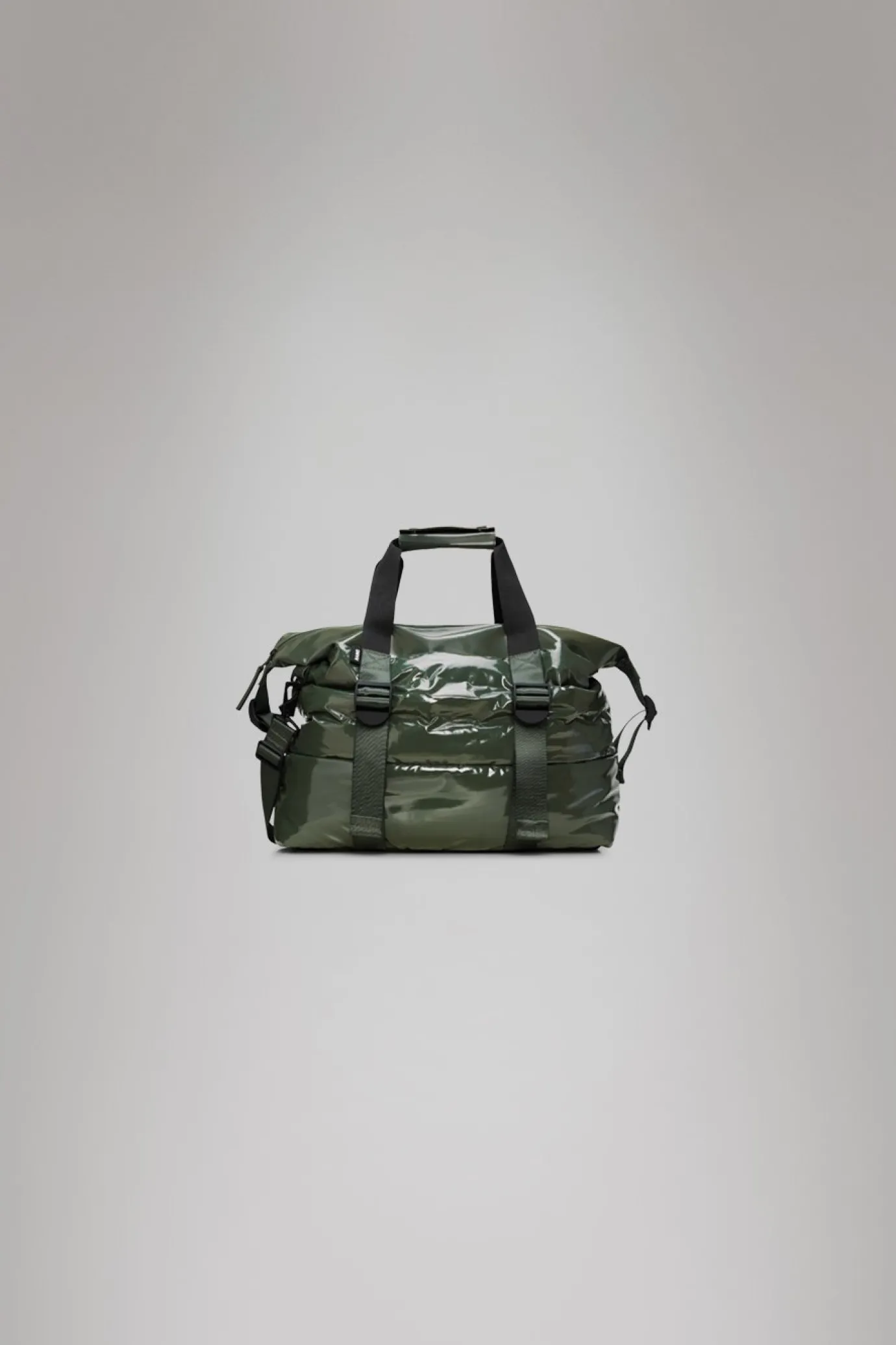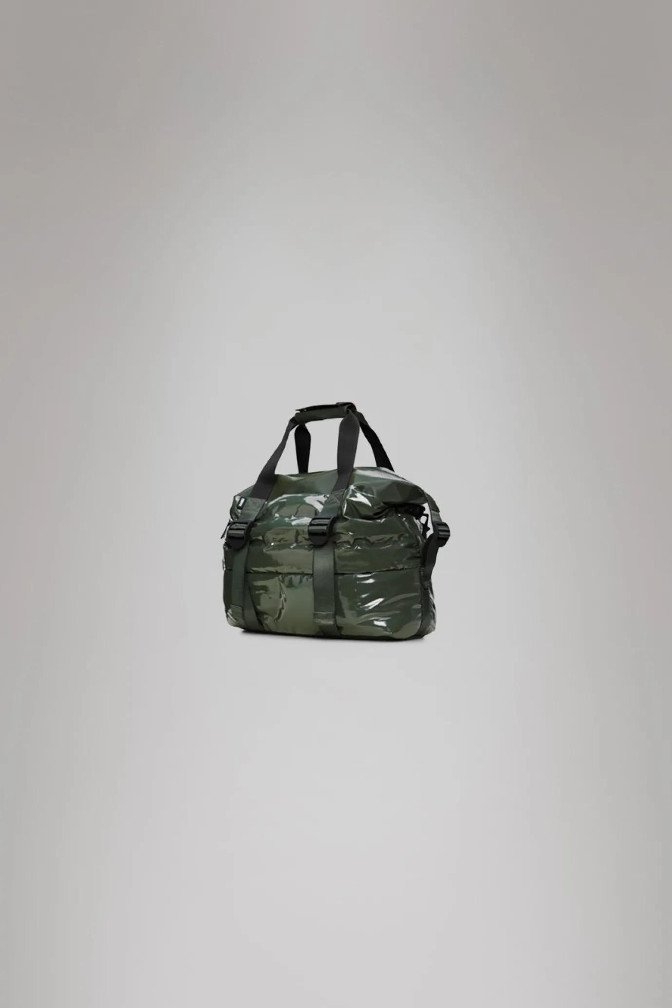 The Puffer Mix small swamp Weekend Bag by Rains is a refined take on the classic Hilo design, combining a spacious main compartment with an internal zip pocket for secure storage of smaller items. Crafted from Rains’ signature waterproof PU fabric, it offers durability and protection against the elements. Adjustable front straps and side compression straps provide extra storage and secure packing, while webbing carry handles and a detachable shoulder strap ensure versatile carrying options. Ideal for light travel, this bag blends the iconic puffer style with practical functionality for a reliable overnight companion.