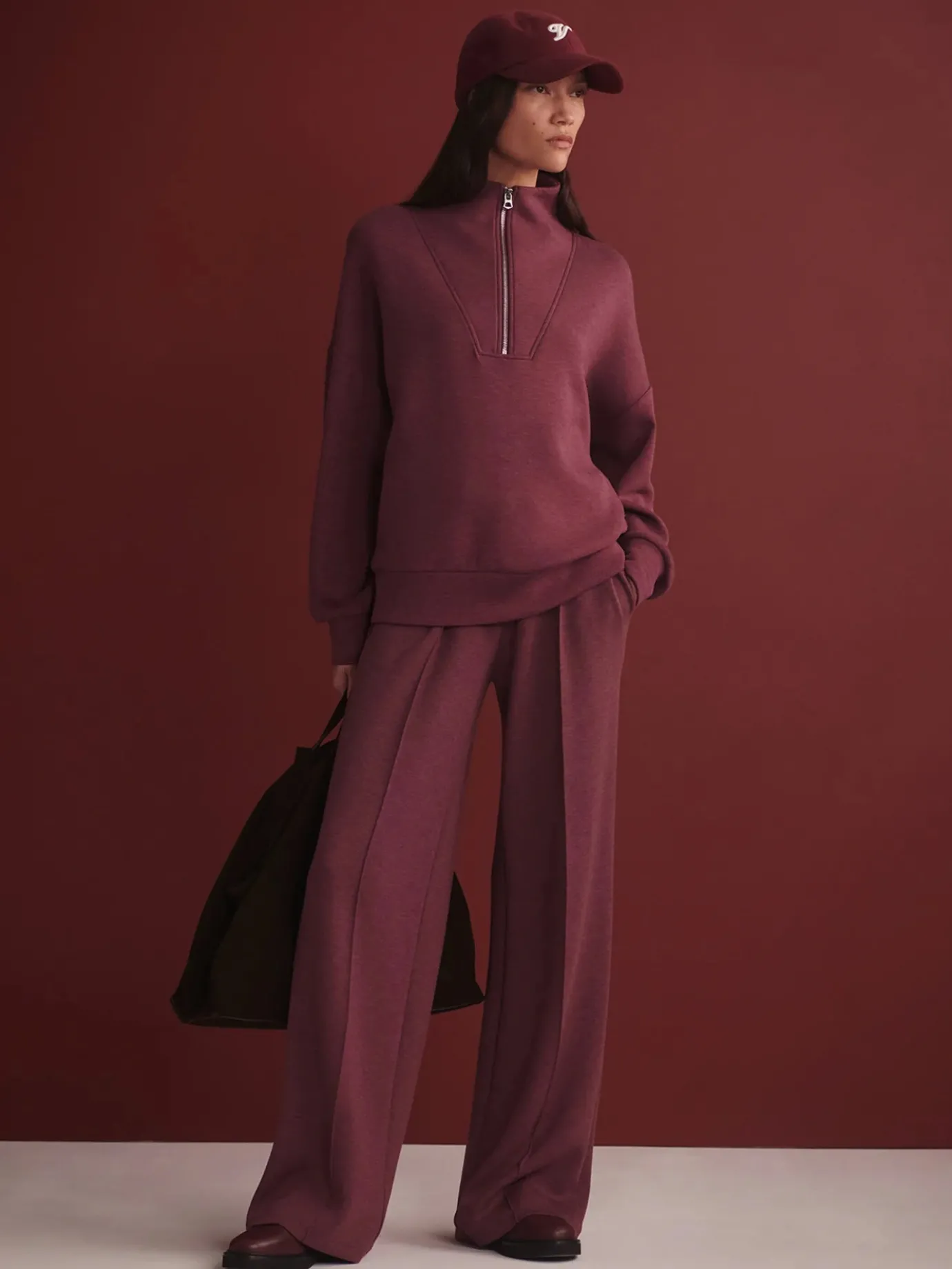 Indulge in luxurious comfort and effortlessly chic style with the Wide Leg Pant 30″ from Varley. Made with the ultra-soft double soft fabric, these pants feature a flattering wide leg design and a comfortable high rise with an elasticated waist and internal drawstrings. With elegant tuck detailing, they are perfect for both lounging and dressing up. Add a cashmere knit for a for a sophisticated everyday look.