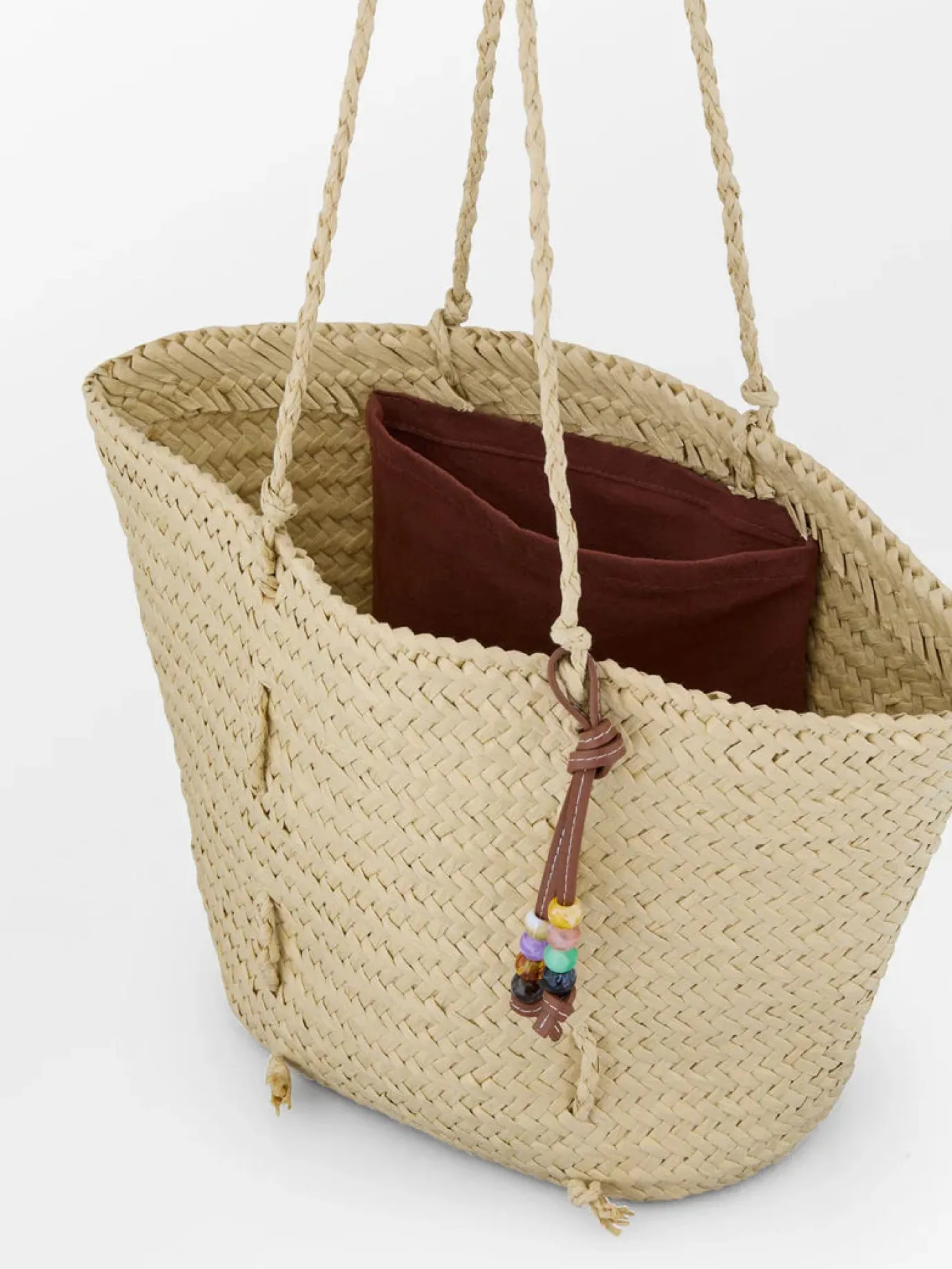 The Strawie Adina M Bag designed by Becksöndergaard is a stylish and spacious shoulder bag, perfect for everyday use. Handmade from 100% paper straw, it has a natural and chic look. A unique detail is the small leather string adorned with colorful beads, adding a summery touch. With dimensions of 52 x 30 cm, it’s great for daily use, a beach trip, or any other occasion. The bag features a large main compartment a small inner pocket to keep your belongings organized.